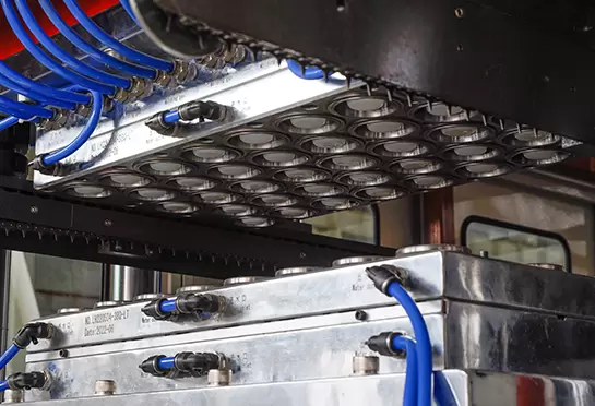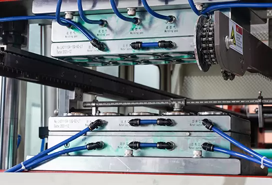 Peregangan servomotor YASKAWA (Jepang) mengontrol kecepatan die atas dan bawah, ini dapat mempertahankan kekuatan seragam untuk memastikan bahwa ketebalan bawah setiap cangkir seragam. Dan ser