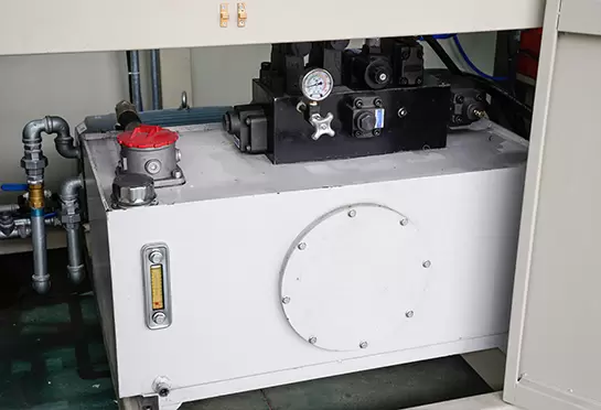 Seluruh bagian digerakkan oleh sistem hidrolik, yang andal dan stabil. Menggunakan proximity switch dari ROCKWELL (USA) menghasilkan presisi pemosisian cetakan yang sangat baik.