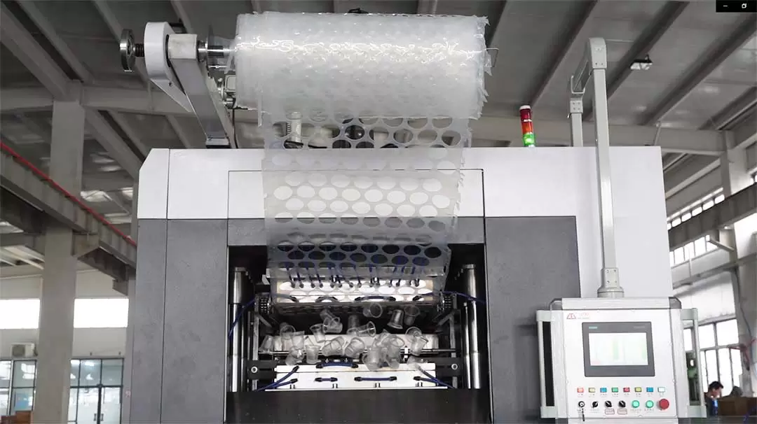 Produksi yang efisien: Peralatan ini memiliki kapasitas produksi yang tinggi dan cocok untuk produksi skala besar. Dapat memproduksi puluhan ribu gelas plastik per jam.
