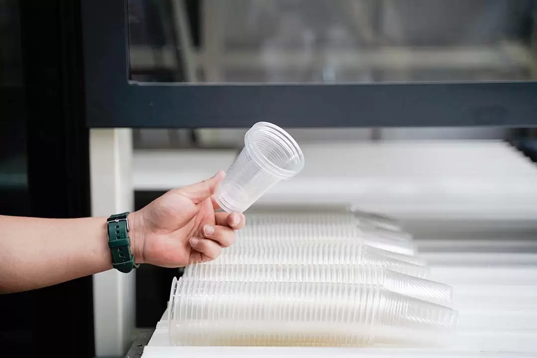 Keserbagunaan: Peralatan ini mendukung pemrosesan berbagai bahan, termasuk PP, PS, PET, PVC, PLA, dll., dan dapat memproduksi cangkir dari berbagai bahan. Pada saat yang sama, meja cetakan dapat disesuaikan secara fleksibel agar sesuai dengan produksi berbagai jenis cangkir.