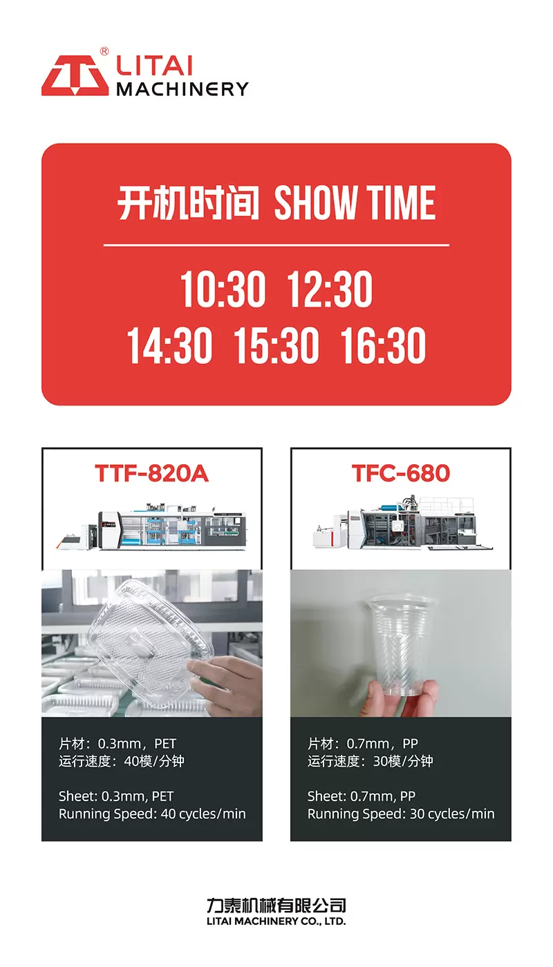 1. Peluncuran produk baru: Kami akan merilis secara resmi generasi baru mesin thermoforming gelas plastik flip-molding yang sepenuhnya otomatis, serta mesin thermoforming multi-stasiun berkecepatan tinggi, dengan kinerja yang lebih tinggi, sistem kontrol yang lebih canggih, dan jangkauan aplikasi yang lebih luas. Mesin ini akan mendefinisikan ulang proses thermoforming dan memberikan pelanggan produktivitas dan jaminan kualitas yang lebih baik.