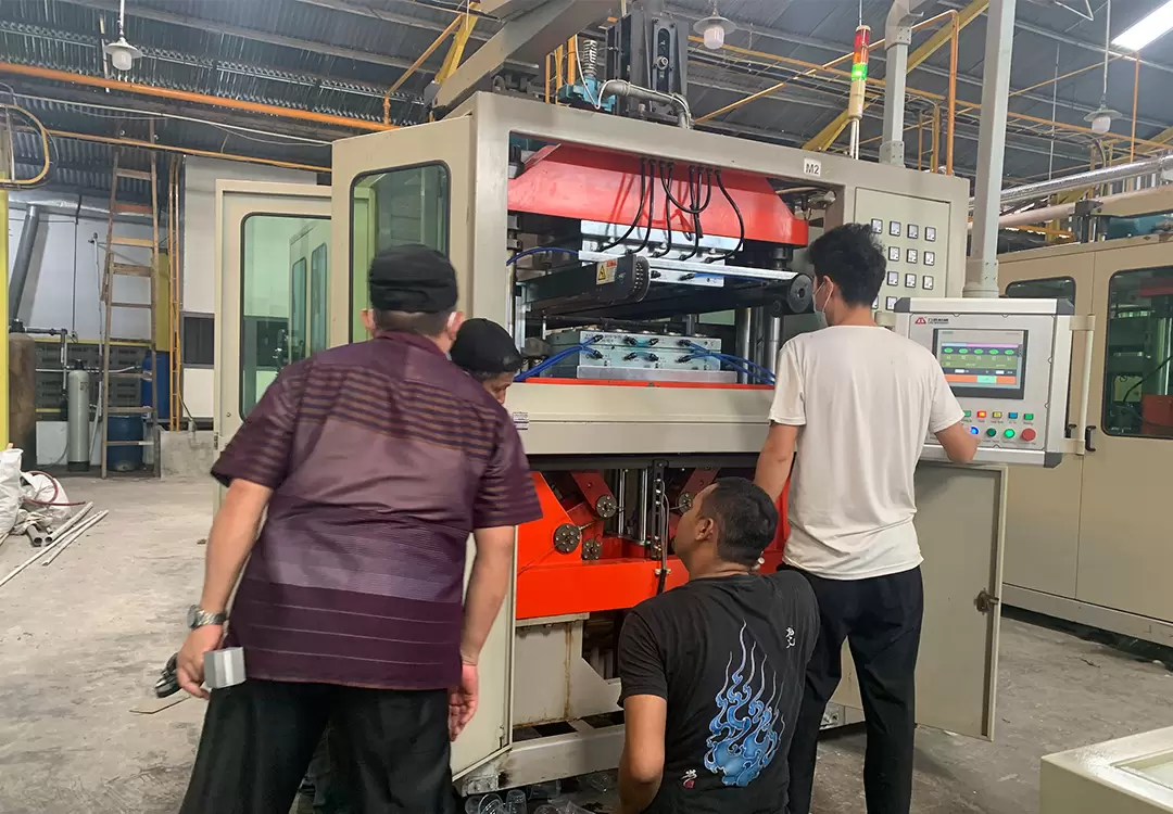 Pada awal Agustus 2023, tim kami pergi ke Indonesia untuk mengunjungi pelanggan lama. Kali ini tim kami pergi ke pabrik pelanggan dan membawa teknisi komisioning peralatan bersama kami. Tujuan pertama adalah untuk menemukan agen untuk mesin thermoforming plastik, dan yang kedua adalah untuk mempertahankan pelanggan lama di Indonesia lagi. Menyesuaikan dan memelihara peralatan pelanggan, dan memecahkan kesalahan dan masalah umum dalam produksi harian untuk pelanggan. Pelanggan dengan hangat menyambut tim kami untuk mengunjungipabrik. Pelanggan ini membeli dua mesin gelas plastik TQC-650B dan dua ekstruder lembaran plastik PP PS TJ-750D dari perusahaan kami pada tahun 2021! perusahaan kami pada tahun 2021!